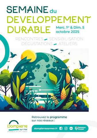 À l’occasion de la Semaine du Développement Durable, la Ville de Dompierre-sur-Mer vous invite à participer à plusieurs temps forts dédiés à l’écologie, à la solidarité et à la transition énergétique.