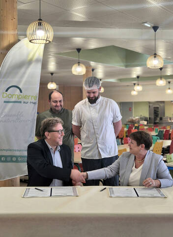 La convention de mutualisation relative à la co-production des repas scolaires a été officiellement signée le lundi 23 février 2026, à l’Espace de restauration scolaire Nina Métayer à Dompierre-sur-Mer.