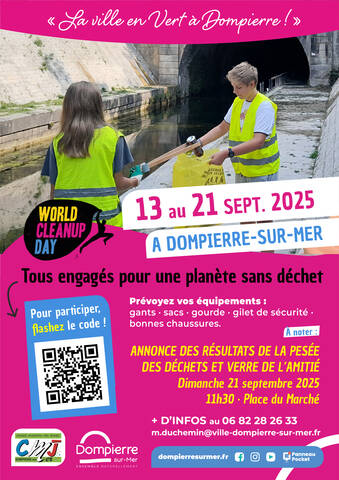 Chaque année, le Conseil Municipal des Jeunes de Dompierre-sur-Mer (CMJ) vous propose de participer au World CleanUp Day, journée mondiale du nettoyage de la planète.