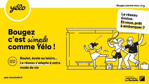 À partir du lundi 25 août 2025, le réseau de transport Yélo évolue afin de mieux répondre aux besoins de mobilité des habitant(e)s de l’agglomération rochelaise.