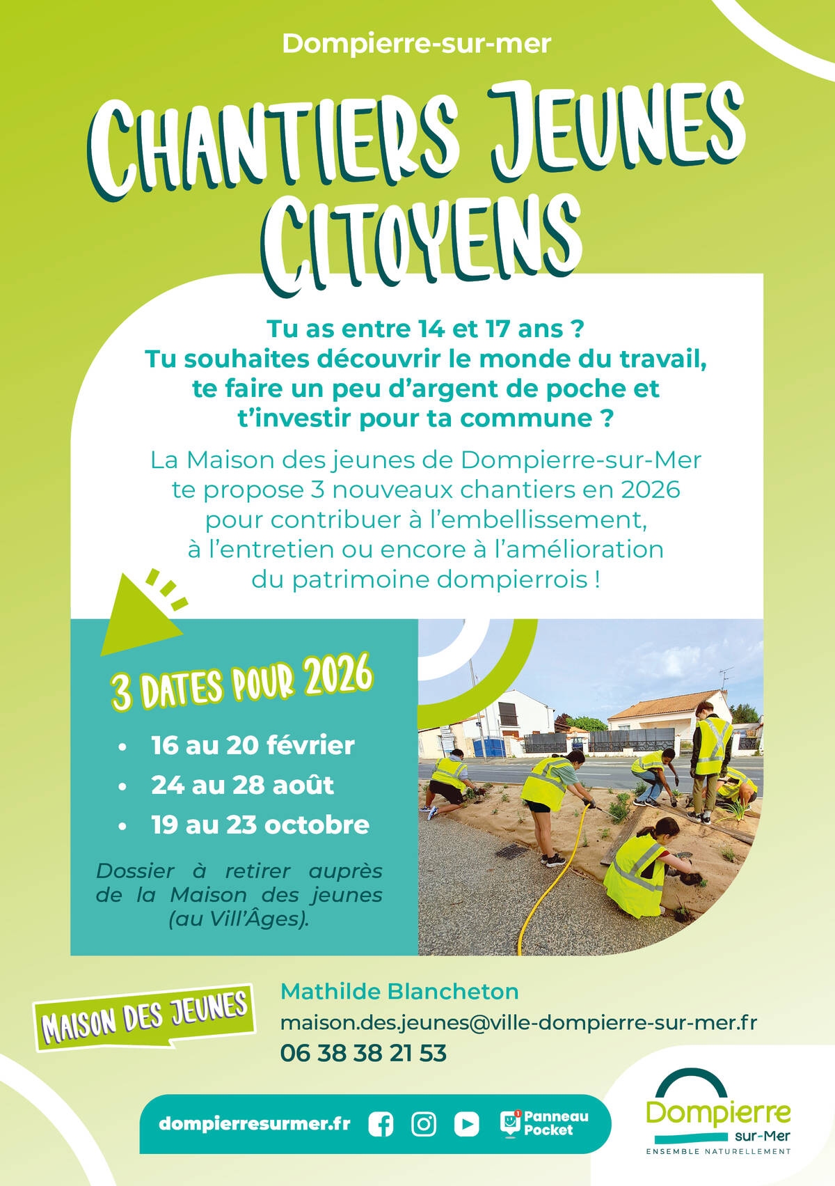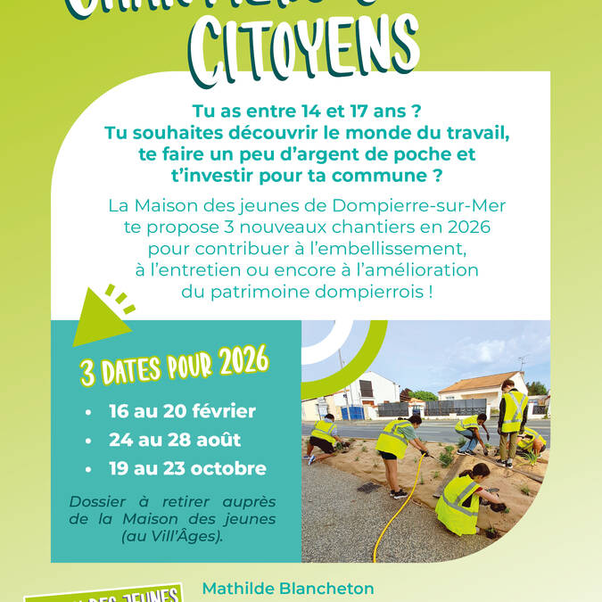 Contacte Mathilde à la Maison des Jeunes : maison.des.jeunes@ville-dompierre-sur-mer.fr · 06 38 38 21 53