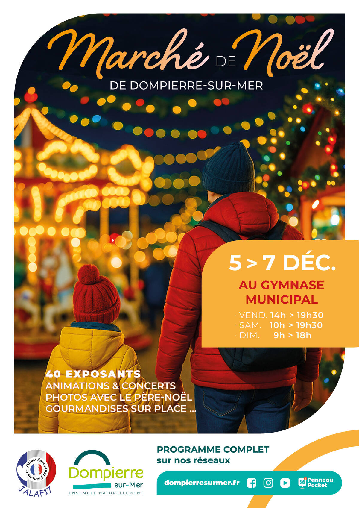 Du 5 au 7 décembre 2025, Dompierre-sur-Mer accueillera son traditionnel Marché de Noël. Trois jours placés sous le signe de la convivialité, du savoir-faire local et de la magie des fêtes, à partager en famille ou entre amis.