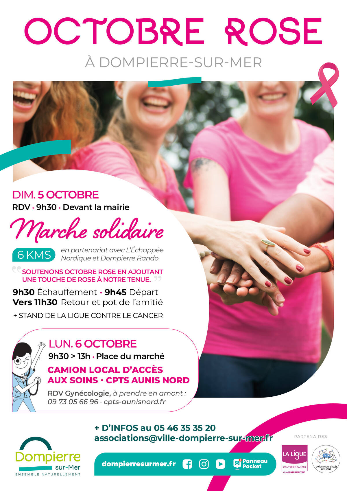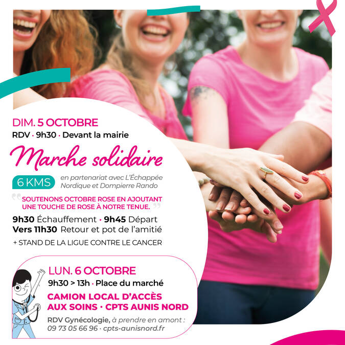Comme chaque année, le mois d’octobre est dédié à la sensibilisation et à la lutte contre le cancer du sein. La commune de Dompierre-sur-Mer s’associe à cette cause nationale et vous propose deux temps forts placés sous le signe de la solidarité et de la prévention.